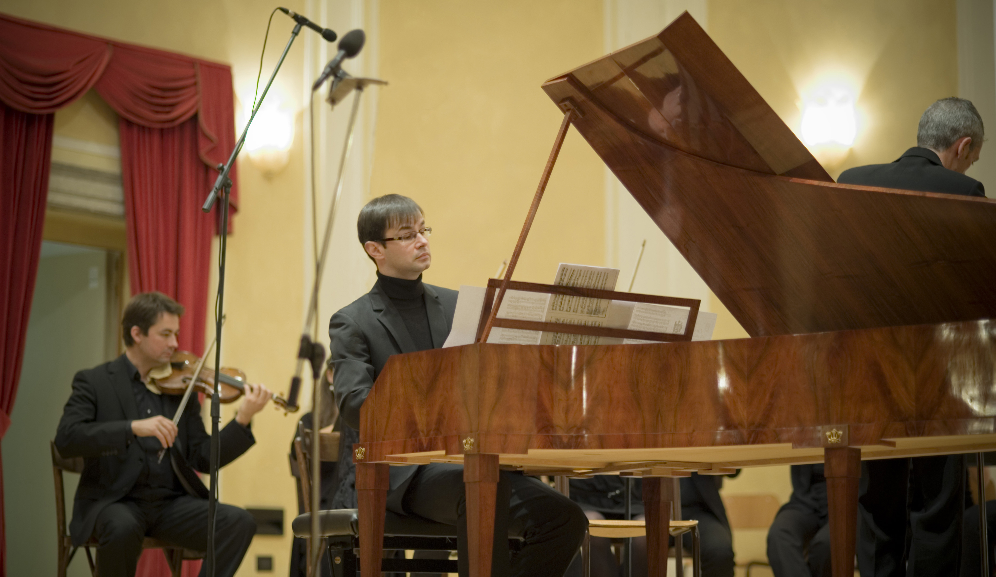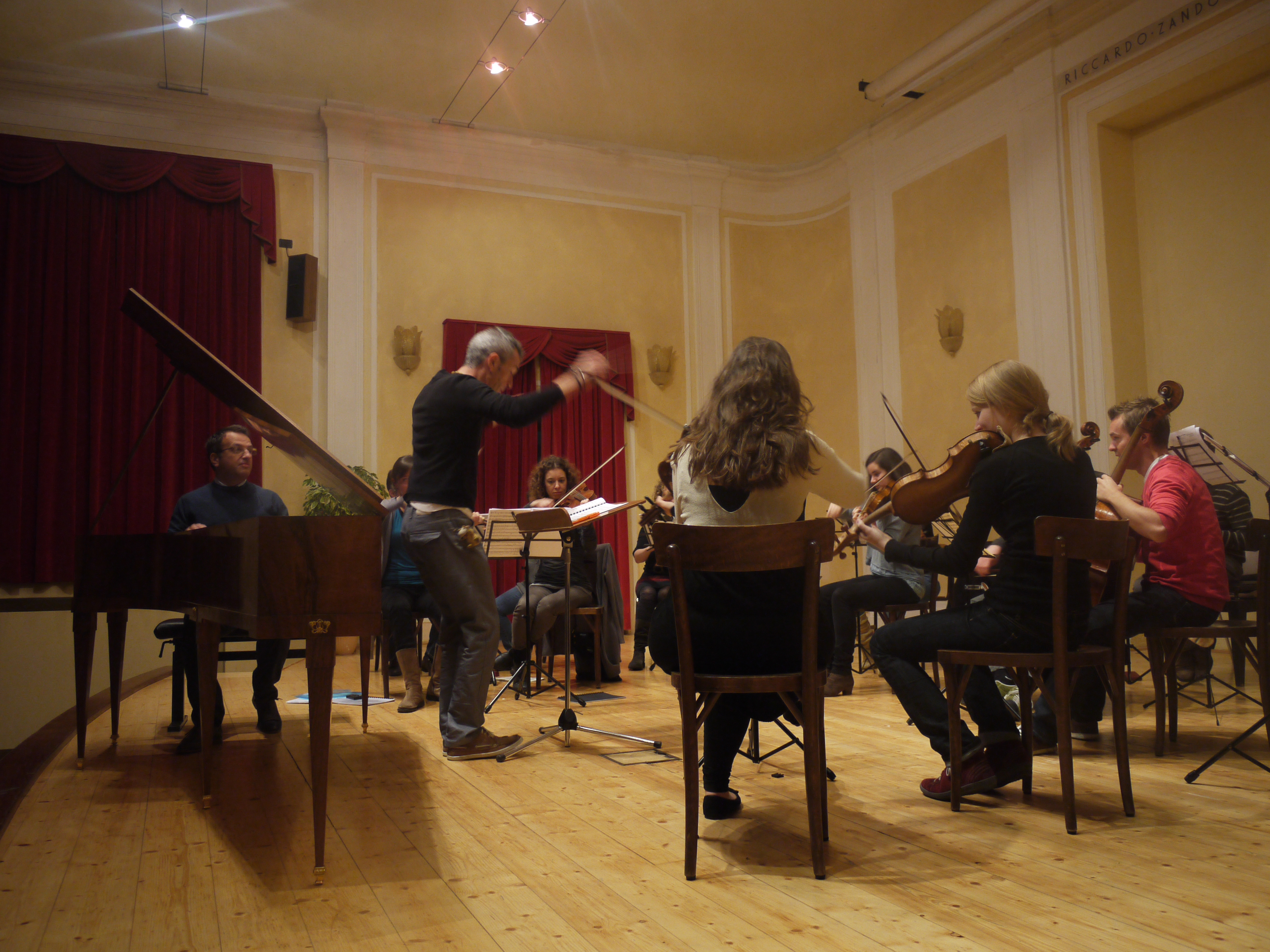 Theresia è al lavoro da ieri e domani inizieranno le prove con i finalisti del Premio Ferrari: ecco qualche immagine “rubata” nel backstage, con Claudio Astronio al lavoro dell’orchestra – e al fortepiano il nostro Mario Martinoli!